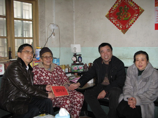 从唐老家中出来,区委领导又赶到老党员杨贻贤家中。杨老已经91岁,1957年加入农工党,是桂林市农工党早期基层组织负责人。在他的影响下,儿子杨新国、孙子杨森林也都加入了农工党。看到区委领导专程赶来,杨老很开心,他拿出90大寿时的照片给大家看,脸上洋溢着幸福和激动。看到杨老身板硬朗,精神矍铄,一门三代都是农工党员,区委领导非常高兴,称赞杨老一家是模范家庭,并送上慰问金,合影留念。接着,召开桂林市农工党基层组织负责人和骨干座谈会,共迎新年。区委领导勉励大家在新的一年里努力工作,为桂林市的发展多做贡献!(农工党桂林市委 梁效永)
