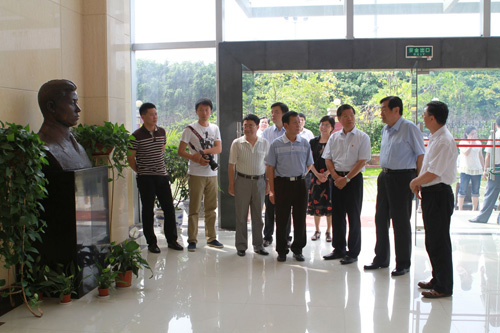 李蒙副主席(右二)在自治区政协副主席、农工党广西区委主委彭钊(右三)的陪同下,