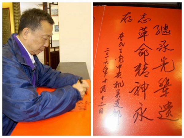 在重庆期间,农工党中央机关支部党员参观了农工党中央机关旧址陈列馆、中国民主党派历史陈列馆、民办飞虎队事迹展览馆等,并在原市委会机关会议室举行了座谈会。姜天麟在参观农工党中央机关旧址陈列馆后,写下“继承先辈遗志 革命精神永存”的留言,支部党员纷纷签名留念。