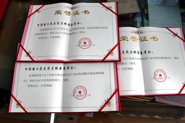 日前,在农工党中央“2016年度优秀调研报告”评选活动中,《关于加快吉林西部农业产业结构调整升级的调研报告》荣获二等奖,《关于促进吉林省环保产业发展的调研报告》、《关于开发长白山区域的药用资源,加速区域经济发展的调研报告》荣获三等奖。