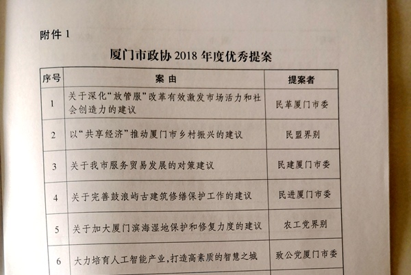 农工党厦门市委会提案被评为优秀提案