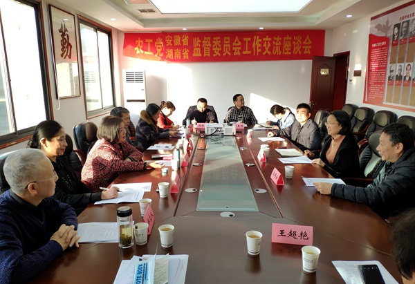 2018年12月17日,农工党安徽省委会专职副主委、省监督委员会主任余成林带领监委会委员赴农工党湖南省委会就党内监督工作开展学习交流,并与农工党湖南省监督委员会举行座谈会。农工党湖南省委会专职副主委、省监督委员会主任蒋秋桃,省监督委员会副主任郭晋云等参加座谈交流。