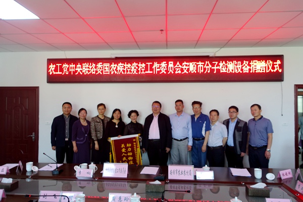 2019年4月24日上午,农工党中央联络委与国农疾控疫控工作委员会在农工党安顺市委会会议室举行签署分子检测设备捐赠仪式。农工党贵州省委会副主委黄惠玲、农工党中央联络委主任黄泰康、国农疾控疫控工作委员会主任李响出席捐赠仪式,农工党安顺市委会主委刘飞出席捐赠仪式并主持活动,安顺市农业农村局相关领导参加活动。