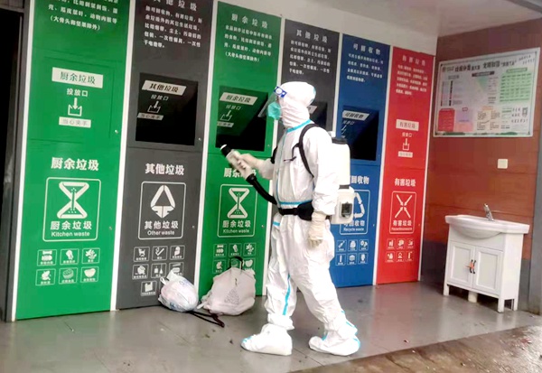 江宁区政府为守护好管控区居民及工作人员的身体健康和生命安全,高度重视新冠肺炎的消杀工作。因此,一支由江宁区城管局、江宁环卫集团工作人员组成的应急救援志愿服务队应“疫”而生。主要工作是对管控区内楼道、公共设施、垃圾箱房及卫生死角等地方进行全面消毒,确保消毒消杀工作全覆盖、零死角、无缝隙。