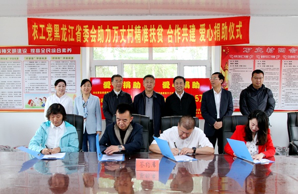 仪式上,杜蒙县泰康镇万丈村党支部,农工党黑龙江省委会机关中共支部、农工党黑龙江省委会机关总支委员会、农工党黑龙江省委会青年工作委员会等四方有关人员签署了《关于助力精准扶贫,打赢脱贫攻坚战合作纪要》;农工党黑龙江省委会机关中共支部与中共万丈村党支部签暑了《共建“精准扶贫基地”协议》;哈尔滨香康医院与杜蒙县泰康镇万丈村委会签署了《助力健康扶贫协议书》。
