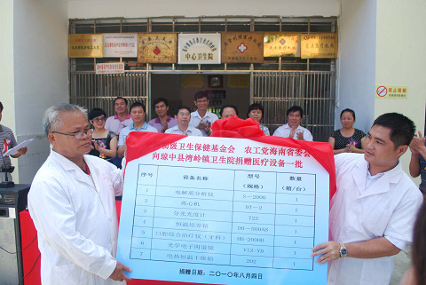2010年8月4日,农工党海南省委会向琼中县湾岭镇卫生院捐赠了一批医疗设备。省政协主席,农工党省委会主委王路作了热情洋溢的讲话,捐赠仪式由省委会副主委宋世锋主持。中共琼中县委、县政府、县人大、县政协、统战部等领导,农工党省委会专职副主委蔡小惠、农工党社会服务专委会成员、机关专干等参加了捐赠仪式。
