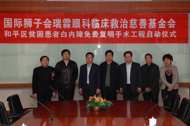 2012年1月6日,“国际狮子会瑞霖眼科临床救治慈善基金和平区贫困患者白内障免费复明手术工程启动仪式”在天津市眼科医院举行。天津市和平区政协主席潘庆元,区政协副主席、农工党和平区委主委、天津市眼科医院院长汤欣、天津市残联、市卫生局等有关领导同志出席启动仪式。