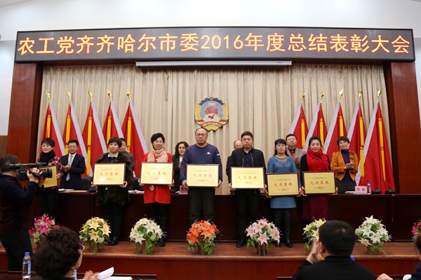 大会对获得农工党黑龙江省委会“先进基层组织”和“优秀个人”的代表颁发了奖状;同时对农工党齐齐哈尔市机关总支一支部等15个基层组织授予“农工党齐齐哈尔市委2016年度先进基层组织”荣誉称号,对于力等100名齐齐哈尔市农工党党员授予“农工党齐齐哈尔市委2016年度优秀个人”荣誉称号,并为获奖者颁发了荣誉证书。