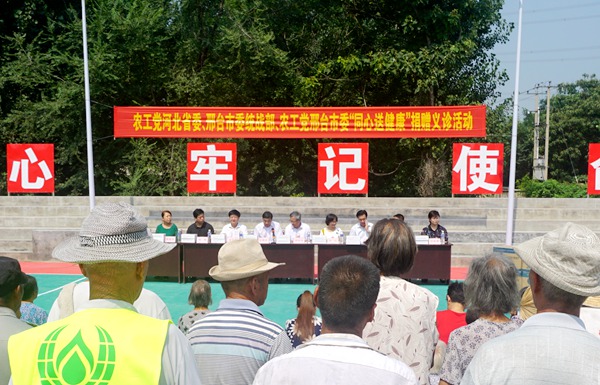 2018年7月20日,农工党河北省委会、中共邢台市委统战部、农工党邢台市委会在内丘县五郭店乡落凹村联合举办“同心送健康”捐赠、义诊活动。农工党河北省委会副主委经顺波出席活动并讲话,邢台市人大常委会副主任、农工党邢台市委会主委周世伟出席活动,中共邢台市委统战部常务副部长宋华章出席活动并讲话。