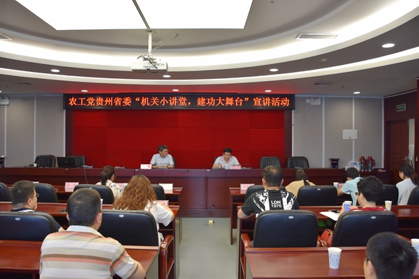 省委会理论与党史研究委员会副主任、贵州师范大学教授、哲学博士王进,省委会理论与党史研究委员会副主任、贵州大学副教授、管理学博士项凯标分别以“中国传统文化中的‘大体观’”和“新形势下产业转型升级与资本运作思考”为题作专题宣讲。