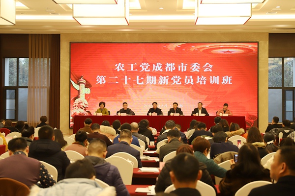 2019年12月12日,农工党成都市委会在成都新华宾馆举办了第二十七期新党员培训班。农工党四川省委会专职副主委夏华祥,农工党四川省委会副主委、成都市委会主委甘华田,市委会副主委池雷霆、胡伟峰,秘书长曾琪,一级调研员杨红出席开班式。培训活动由池雷霆主持。