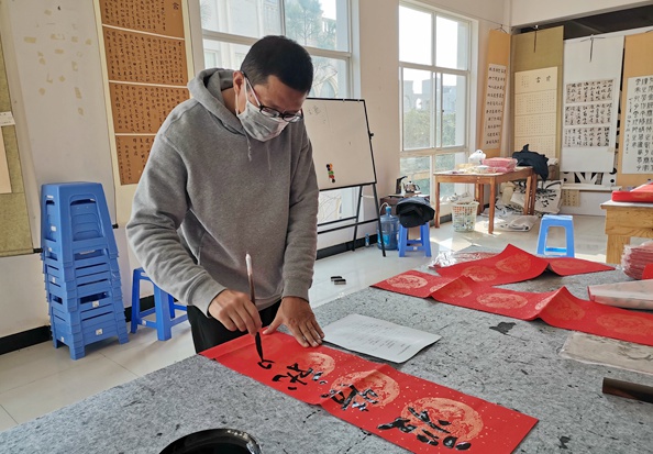农工党党员、个旧市泓回文化产业有限责任公司总经理马飞翔取消了原定于大年初三的开窑纳福活动,积极参加沙甸街道办组织的对抗疫情宣传活动,爱好书法的他义务书写了防疫宣传标语50幅,为营造沙甸区防控氛围贡献了自己的一点力量,他说:“在接下来的日子里,公司的全体员工将继续发挥自身微薄力量,与全国人民一起同呼吸、心连心、共抗病毒,愿病毒早日被打败!神州大地天朗水清,知己好友共聚泓回,赏柴烧,品紫陶、读诗书、嗅墨香。”