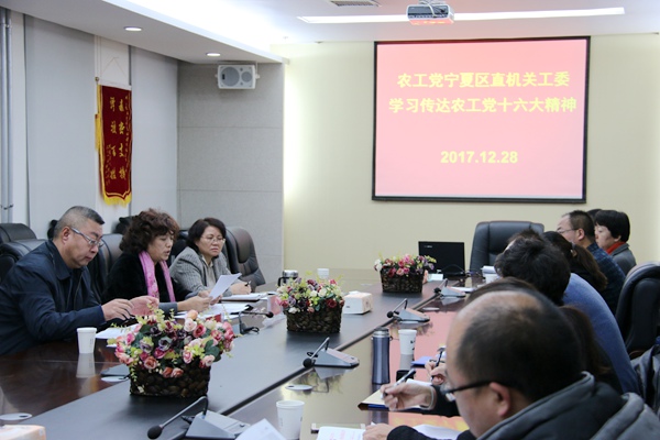 2017年12月28日,农工党宁夏区直工委召开全体会议,传达学习农工党十六大会议精神。区委会副主委李进、王波出席会议,会议由区委会秘书长、直工委主委杨丽琼主持。
