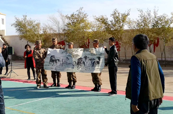 在神仙山边防连队哨所,战士们用规范整齐的队列热情欢迎考察组一行。考察组通过参观连史展室、农副业基地、哨所瞭望塔,走战士巡逻路,聆听部队领导讲述哨所的发展史,与边防战士们零距离接触,了解了驻边防指战员的生活情况和部队的发展变化,真切地感受到戍边战士们“驻守边关,保家卫国”的可贵精神和感人事迹。考察组一行还与战士们一起联欢,为他们送上了精心准备的文艺节目和精心挑选的文史书籍、书画作品等慰问品。